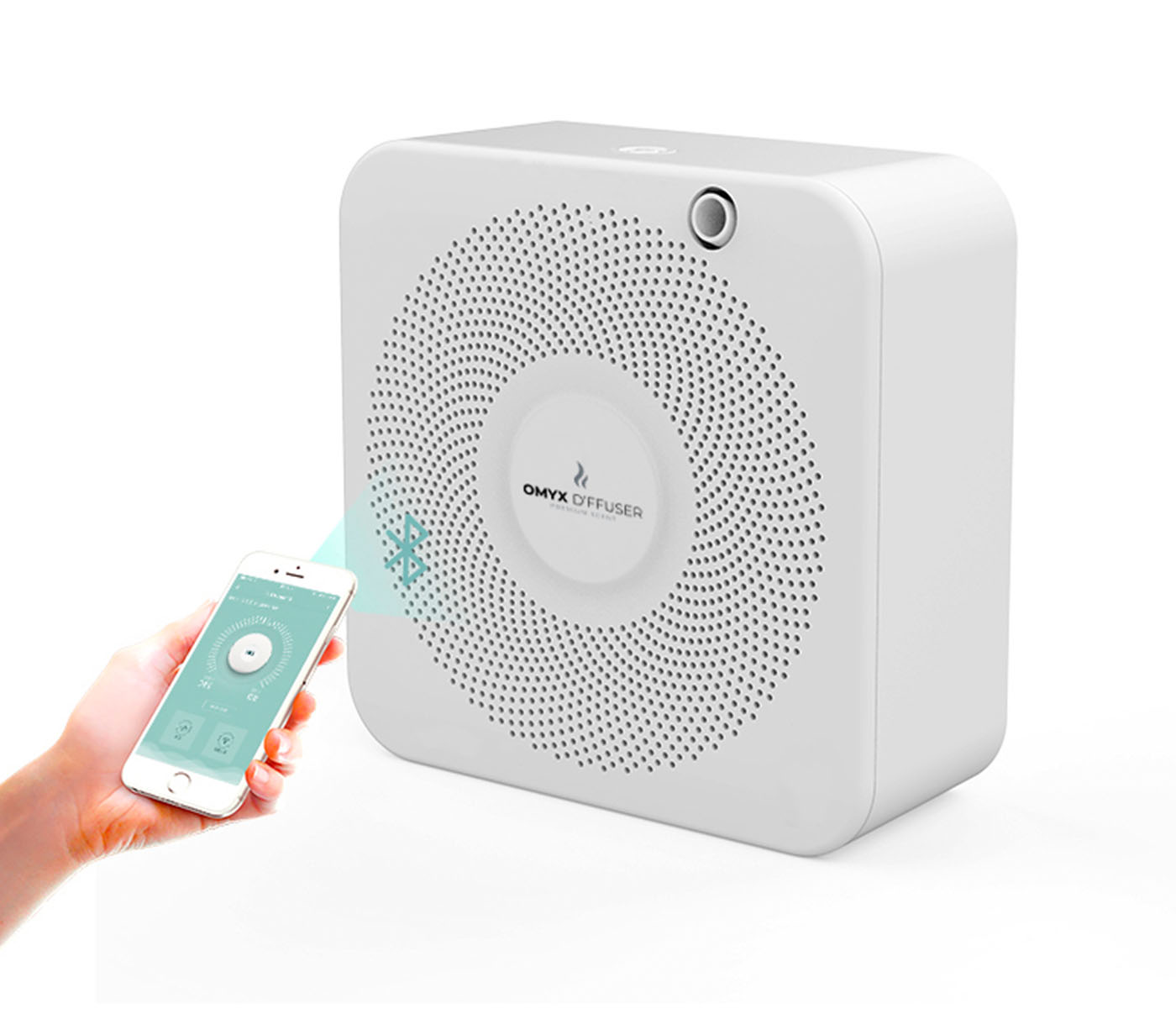 Our unique home aroma diffuser, it is the smallest and most exquisite product compared with similar coverage area diffusers in the market. It integrates home elements and gets rid of the usual rigid design of other fragrance products. It is controlled with your smart phone via Bluetooth and covers a space of 300 sq.ft.